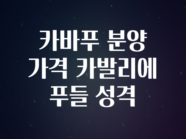 분양 시 가장 민감한 부분이 '가격'이죠. 카바푸는 희소성과 인기에 힘입어 국내에서도 분양 가격이 꽤 높은 편입니다.